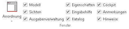 Stellen Sie hier ein, welche der angebotenen Fenster Sie für Ihre Arbeit benötigen. Setzen Sie ein Häkchen für jedes einzublendende Fenster.