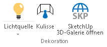 Über diesen Schalter können neue Lichtquellen in einer Draufsicht platziert werden. Über das Kontextregister Visualisierung können die Lichtquellen mithilfe der Schaltflächen Leuchten an und Leuchten aus entsprechend ein- und ausgeschaltet werden.