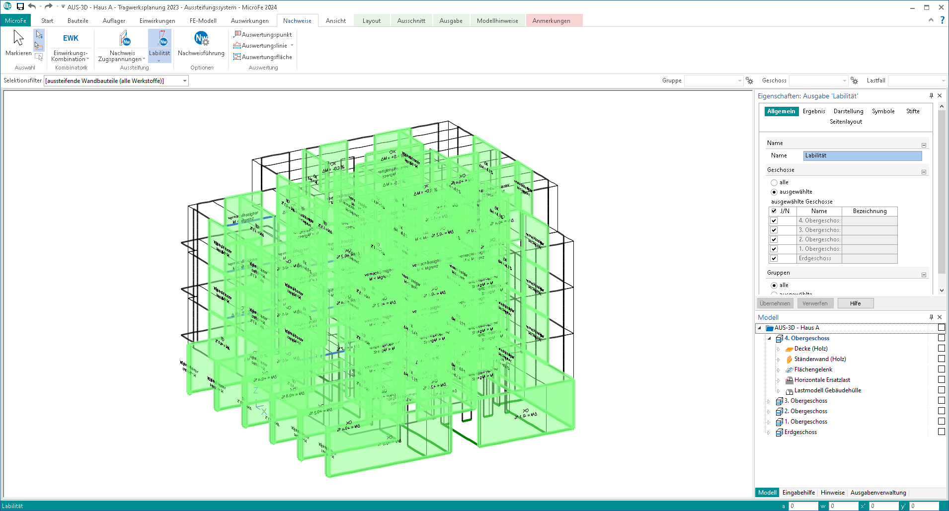 Das Ziel der Labilitätsuntersuchung ist es, nachzuweisen, dass die Verteilung der horizontalen Lasten aufgrund ausreichender Steifigkeiten nach Theorie I. Ordnung erfolgen darf.