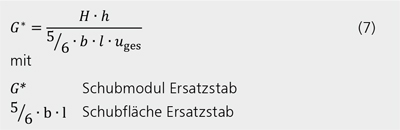 Mit der Kenntnis der Schubverformung am Tafelkopf uges wird nun unter Annahme eines Ersatzstabes auf das Schubmodul G* rückgeschlossen.
