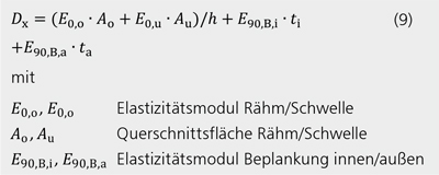 Die Normalsteifigkeit in x-Richtung Dx setzt sich somit aus den Anteilen der Beplankung, des Rähm und der Schwelle folgendermaßen zusammen: