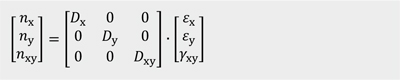 Die Beziehung zwischen Schnittgrößen, Scheibensteifigkeiten und Verformungen lautet in Matrixschreibweise folgendermaßen:
