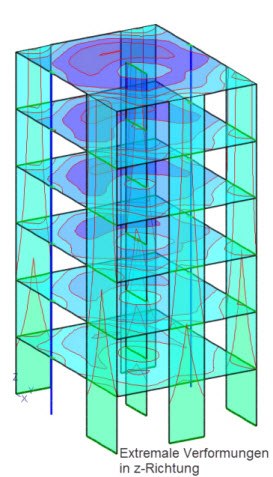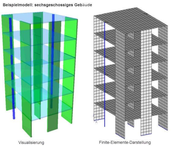 Das prinzipielle Vorgehen in MicroFe mit den wesentlichen Eingabeschritten und den zugehörigen Berechnungsgrundlagen zur Bearbeitung von Erdbebennachweisen nach DIN EN 1998-1 [1] wird im nachfolgenden Artikel vorgestellt. Dazu wird ein sechsgeschossiges Gebäude untersucht. Das Gebäude wird zu diesem Zweck als räumliches Modell mit Stab- und Schalenelementen diskretisiert. Möglichst alle tragenden Elemente sollten in dem Modell abgebildet werden, so dass Berechnung und Nachweis am gleichen Modell erfolgen können.