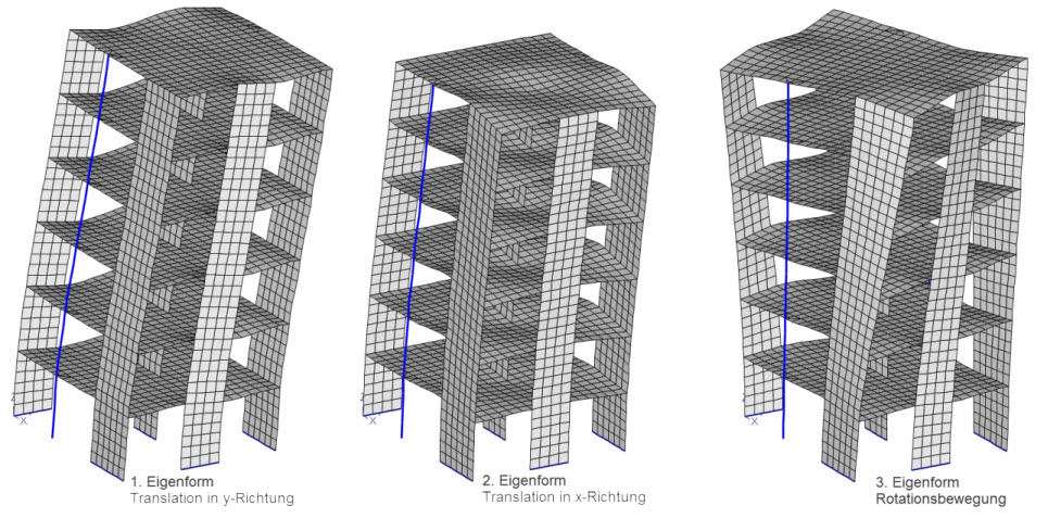 Als Ergebnis der dynamischen Berechnung stehen die Eigenvektoren und die zugehörigen Eigenformen zur Verfügung, die tabellarisch und/oder grafisch auszugeben sind.