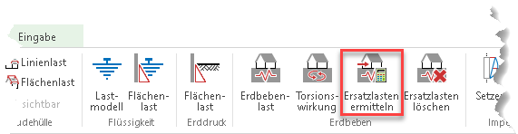 Nach der dynamischen Berechnung und der Definition der Erdbebenlasten sind eine oder mehrere seismische Erregungen zu definieren. Klicken Sie dazu auf die Schaltfläche "Erdbebenersatzlasten ermitteln" im Register „Einwirkungen“.
