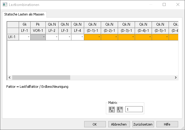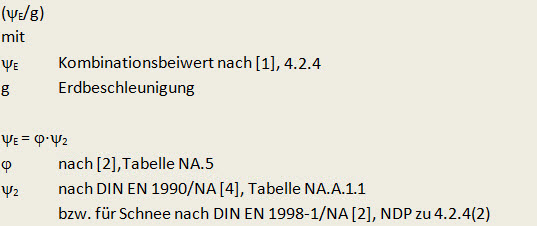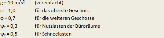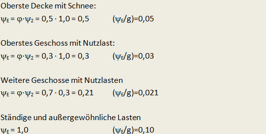 Um die o.g. Lasten anzusetzen, wird als Lastfallfaktor der Quotient (ψE/g) eingetragen. In diesem Beispiel wird mit folgenden Werten gerechnet: