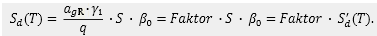·         Der Faktor dient zur Skalierung der Bemessungs-Antwortspektren nach DIN EN 1998-1. Alle Ordinaten des gewählten Antwortspektrums werden mit diesem Faktor multipliziert. Die Größe des Faktors ist abhängig vom vorliegenden Antwortspektrum. Liegt das Spektrum in normierter Form z.B nach DIN EN 1998-1 vor, ist der Faktor nach der unterhalb angegeben Formel zu ermitteln. Falls das gewählte Antwortspektrum nicht in normierter Form vorliegt, ist für den Faktor 1.0 zu verwenden. Der Faktor wird ermittelt aus: