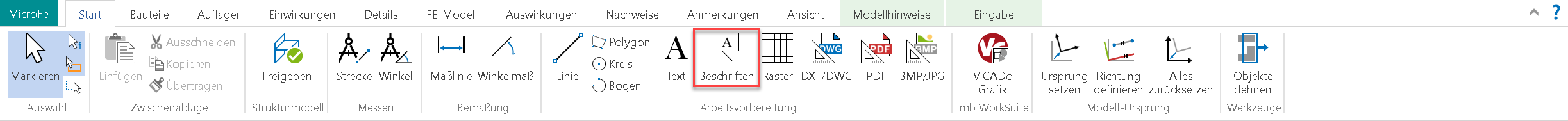 Die Schaltfläche Beschriftungen erreicht man über das Register „Start“ im Menüband.