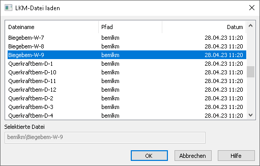 MicroFe/EuroSta ermöglicht das Speichern und Laden von Lastkombinationen (LKM-Dateien). Erzeugt und geladen werden Lastfallkombinationen im Rahmen der Kombinationsbildung.