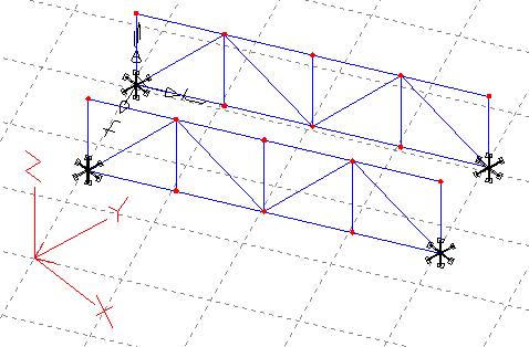 Stabelemente und Auflager sind echte 3D-Objekte, die mit diesem Generator erzeugten Fachwerke können also in räumlichen Tragwerken verwendet werden. Ober- und Untergurt sind jeweils ein durchgehender Stab. Bei den erzeugten Auflagern handelt es sich um globale Auflager, die das Tragwerk als Volleinspannung halten.