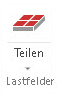Mit der Erzeugung von Platten werden automatisch Flächenlasten erzeugt. Diese Flächenlasten wirken auf sogenannten Lastfeldern, die in den Positionseigenschaften der Bauteile definiert sind. Mit einem Klick auf den oberen Teil der Schaltfläche Teilen haben Sie die Möglichkeit, diese Lastfelder zu teilen. Klicken Sie auf den unteren Teil der Schaltfläche öffnet sich eine Auswahlliste zur Bearbeitung von Lastfeldern. Damit haben Sie die Möglichkeit, Lastfelder zu löschen, zu vereinigen und zu verschieben, sowie Lastfelder zuzuordnen.