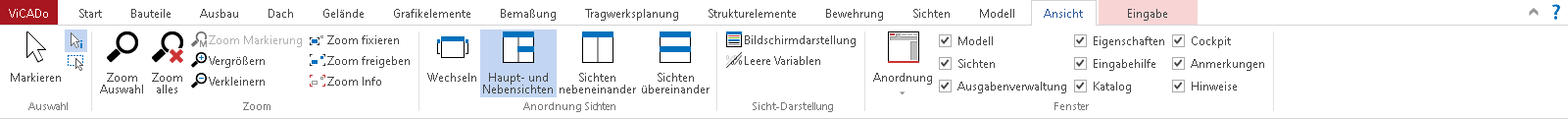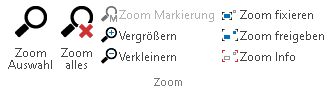 In der Gruppe "Zoom" stehen für 2D-Sichten und Visualisierungen verschiedene Lupen-Funktionen bereit: