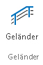 Mit Hilfe dieser Schaltfläche kann ein Geländer im ViCADo-Modell erzeugt werden. In der Optionenleiste kann für die Eingabe z.B. zwischen konstantem Niveau und automatischer Höhenermittlung unterschieden werden.