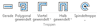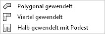 Über diese Auswahlschaltfläche können verschiedene halbgewendelte Treppen erzeugt werden. Die Standardeinstellung ist 'halb gewendelt'. Eingabeoptionen stehen in der Optionenleiste zur Verfügung.