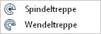 Auswahlschaltfläche zur Erzeugung von Spindel- und Wendeltreppen. Die Standardeinstellung ist 'Spindeltreppe'. Eingabeoptionen stehen in der Optionenleiste zur Verfügung.