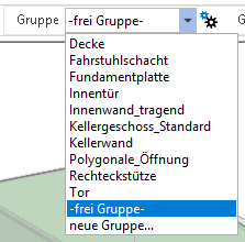 Wird vor der Eingabe eines Objektes eine Gruppe gewählt, werden alle in der Folge modellierten Objekte dieser Gruppe zugeordnet.