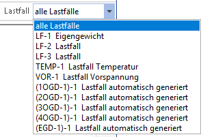 Wird z.B. der Lastfall „LF-2“ ausgewählt, werden nur noch die Lastpositionen angezeigt, die Lastwerte für den gewählten Lastfall liefern.