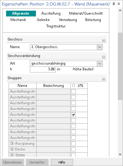 Die gewählte Geschosszuordnung der einzelnen Objekte kann über die Positionseigenschaften eingesehen und angepasst werden.