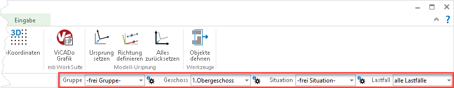 Die Gruppierungsfunktionen ermöglichen eine Einteilung bzw. Zuordnung in Gruppen, Geschossen, Situationen und Lastfällen. Dies trägt zur Übersichtlichkeit komplexer Projekte bei.