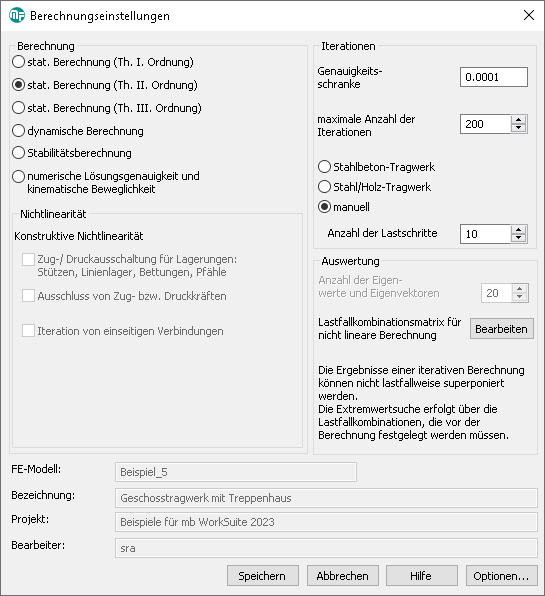 In diesem Dialog können Einstellungen für die Rechenläufe in MicroFe und EuroSta vorgenommen werden.