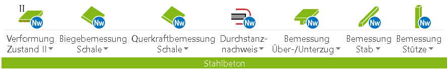 Über das Register Auswirkungen können Sie auf die Ergebnisse der Nachweise und Bemessungen zugreifen. Diese werden entsprechend nach Werkstoff wie Stahlbeton, Stahl, Holz oder Mauerwerk.