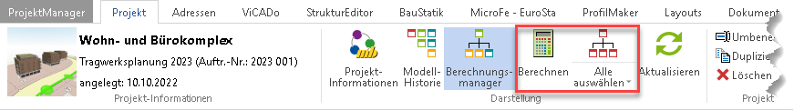 Der Berechnungsmanager wird über die gleichnamige Schaltfläche im Register Projekt des ProjektManagers erreicht.