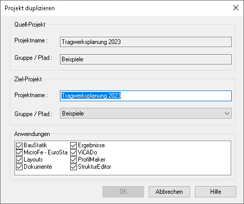 Öffnen Sie das Projekt und klicken Sie im Register "Projekt" auf die Schaltfläche "Duplizieren".