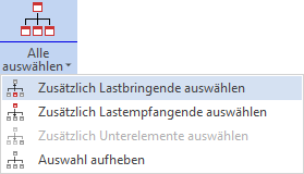 Zusätzlich Unterelemente auswählen: Diese Schaltfläche wird aktiv, wenn ein Struktur- oder BauStatik-Modell selektiert ist. Beim Klick darauf werden neben den bereits markierten Einträgen, zusätzlich alle Unterelemente ausgewählt.
