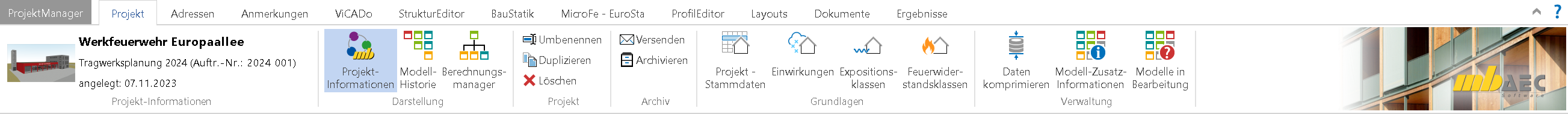 Hier haben Sie Zugriff auf die Projekt-Stammdaten. Dort werden viele berechnungs- und nachweisrelevante Informationen. Sie beinhalten z.B. Parameter zu Stahlbauprofilen, materialbezogenen Festigkeitswerten oder auch Teilsicherheits- und Kombinationsbeiwerte von Einwirkungen.