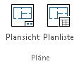 Über die Schaltfläche Plansicht lassen sich Pläne des Modells erstellen. Auf einem Plan (=Plansicht) können mehrere der bereits angelegten Sichten platziert werden.