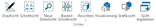 Legt eine neue Grafiksicht an. Grafiksichten sind 2D-Darstellungen, die keine Bauteilinformationen besitzen. Die Durchgängigkeit der Bearbeitung, wie sie das Arbeiten am 3D-Modell vorsieht, geht verloren. Das heißt: Geometrien können nicht über die Bauteileigenschaften, sondern nur rein grafisch modifiziert werden.
